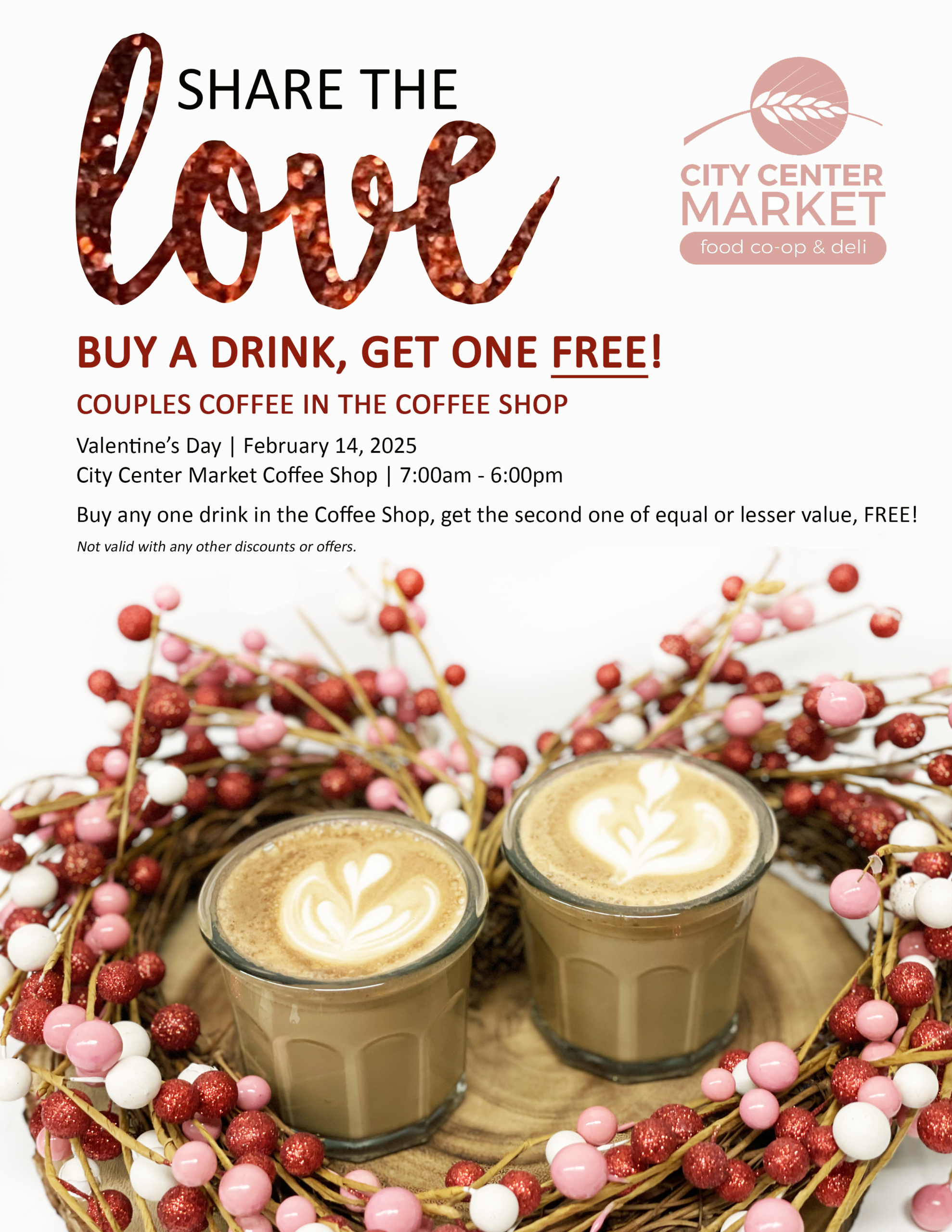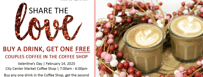 Join us at City Center Market Coffee Shop for Couples Coffee on Valentine’s Day, 2/14!