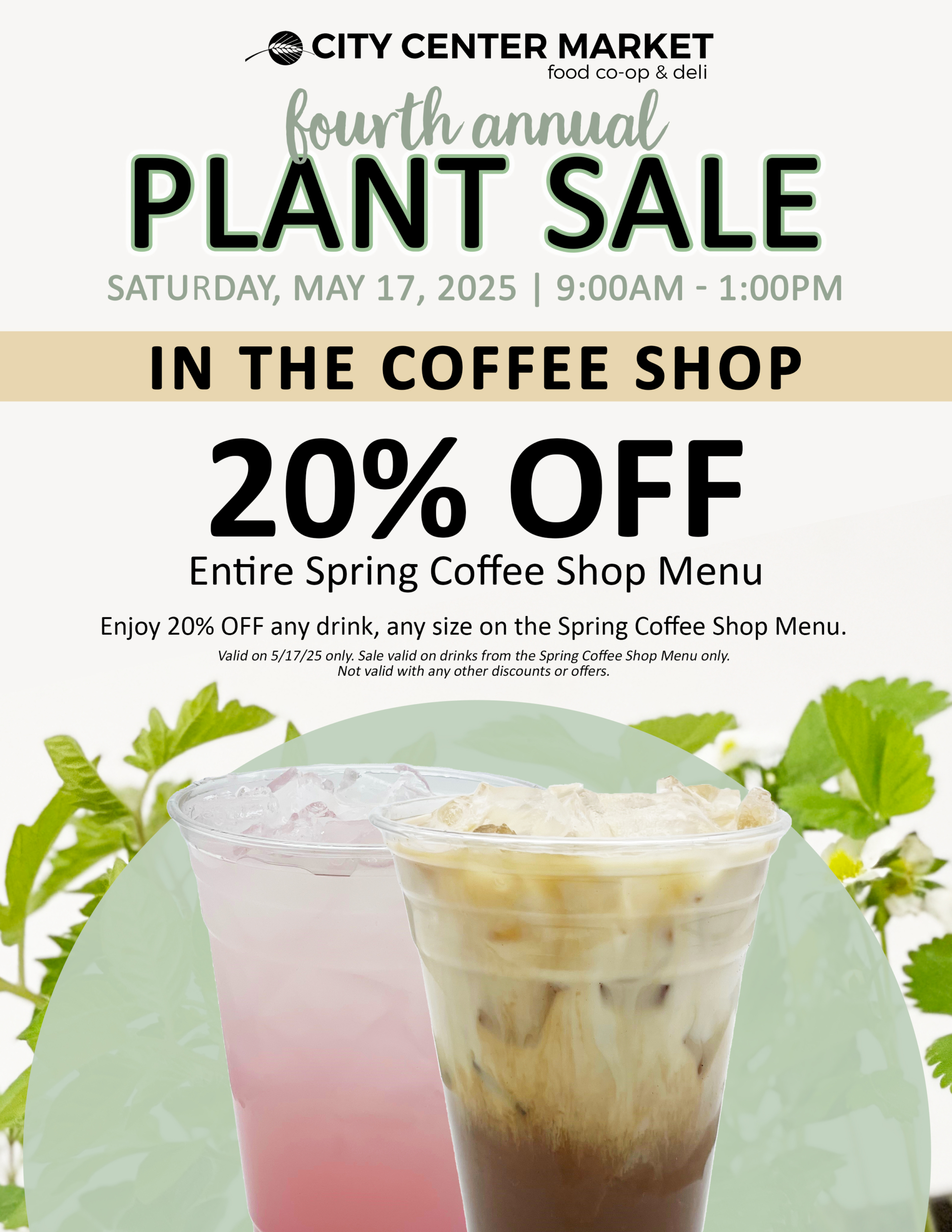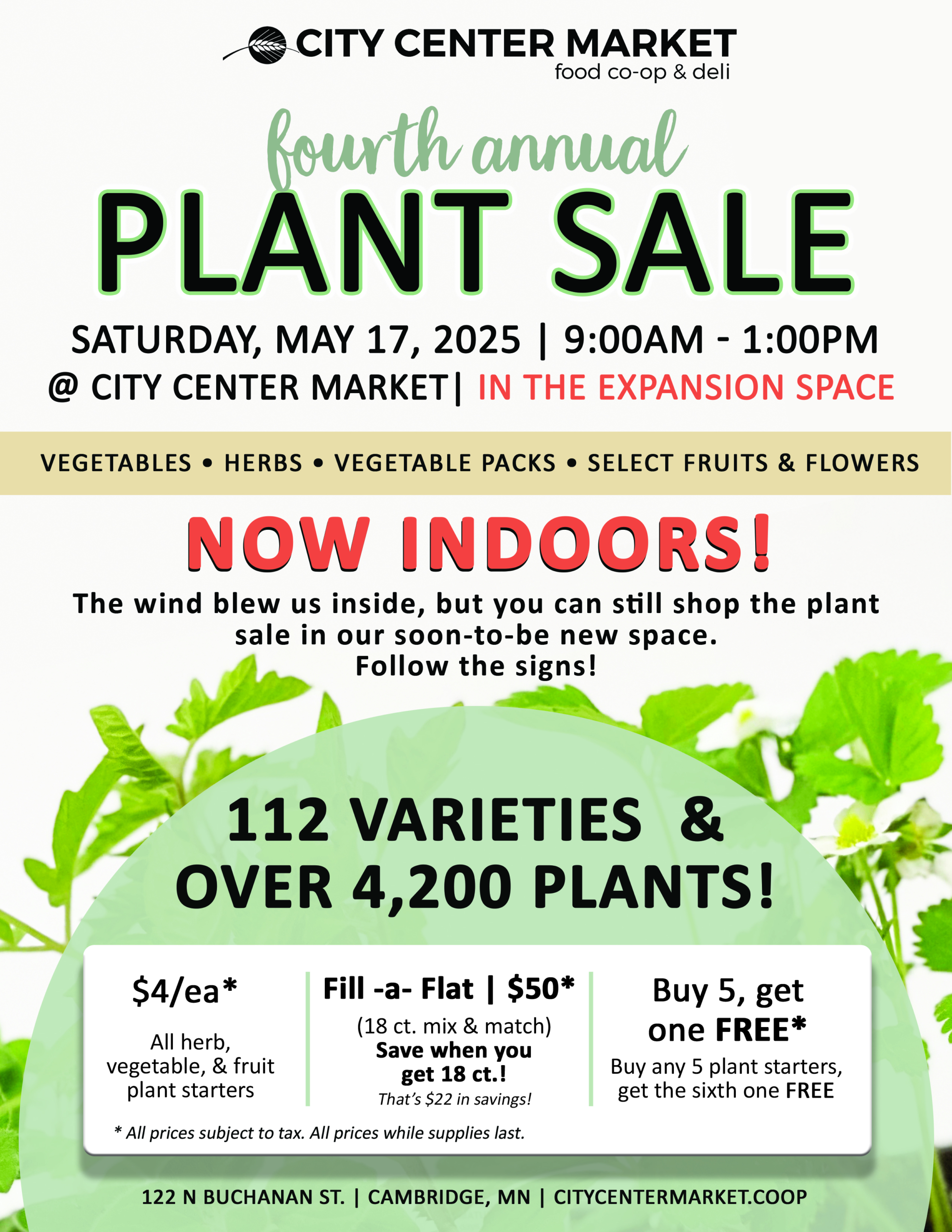 The wind blew us inside, but you can still shop the plant sale in our soon-to-be new space! Follow the signs when you get to the co-op.