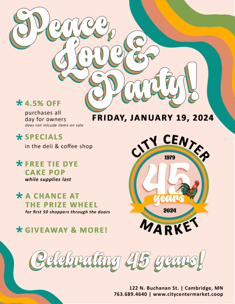 Join us at the co-op and help us celebrate 45 years in business!