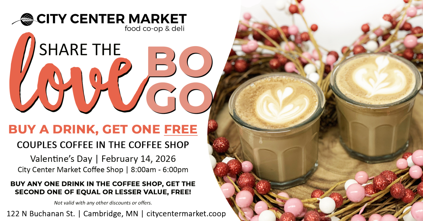 City Center Market 122 N. Buchanan Street, Cambridge2026 St. Patrick's Day Happy Hours in the City Center Market Coffee Shop Tuesday, March 17, 2026 | 11:00am - 6:00pm LUCKY YOU! Join us in the Coffee Shop on St. Patrick's Day, get any 20 oz. Signature Latte for just $3.99! Valid 3/17/26 from 11:00am to 6:00pm only. Not valid with any other discounts […]